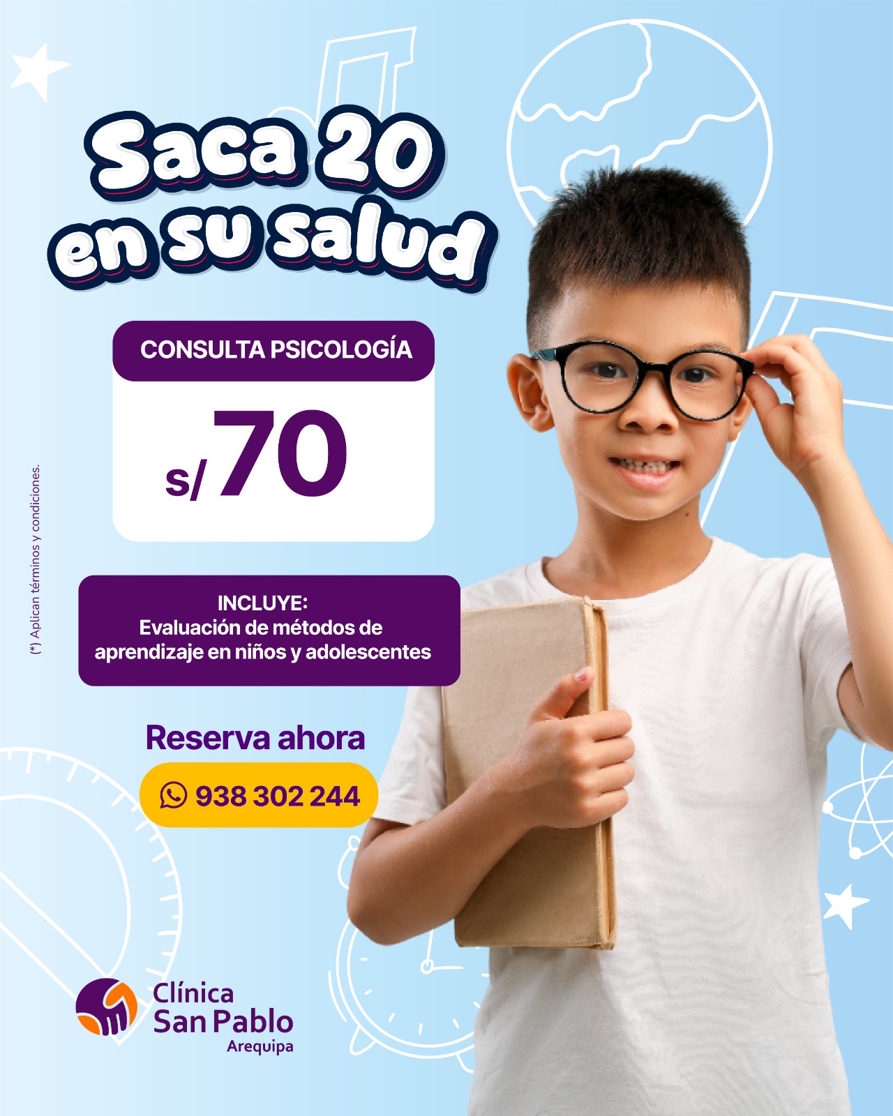 • El precio de S/ 70.00 no incluye medicamentos, pruebas psicométricas adicionales o informes detallados para fines legales o escolares externos, a menos que el especialista lo indique explícitamente durante la sesión.